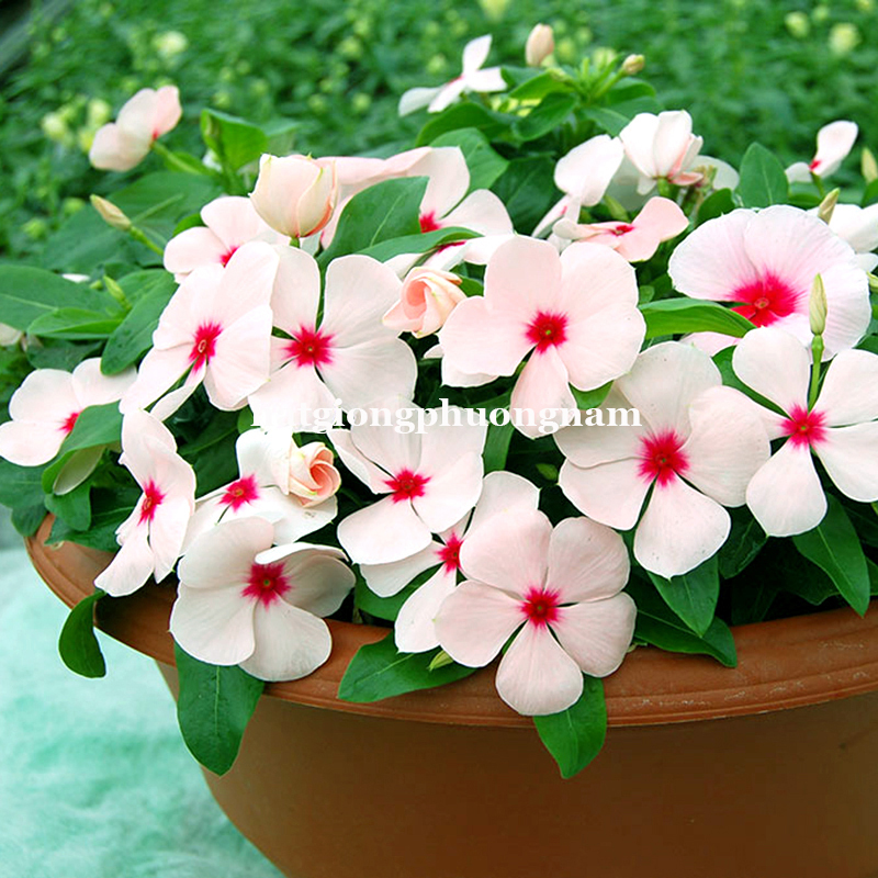 Hạt giống dừa cạn đứng siêu bông mix F1 là dòng hoa cảnh nổi bật với dáng cây đứng gọn, hoa nở cực sai và màu sắc phối mix rực rỡ. Nhờ ưu thế giống F1, cây sinh trưởng khỏe, chịu nắng tốt, ra hoa sớm và nở liên tục trong thời gian dài. Giống hoa này rất phù hợp trồng chậu, trồng bồn hoặc trang trí sân vườn, giúp không gian luôn tươi tắn, sinh động mà không tốn nhiều công chăm sóc.